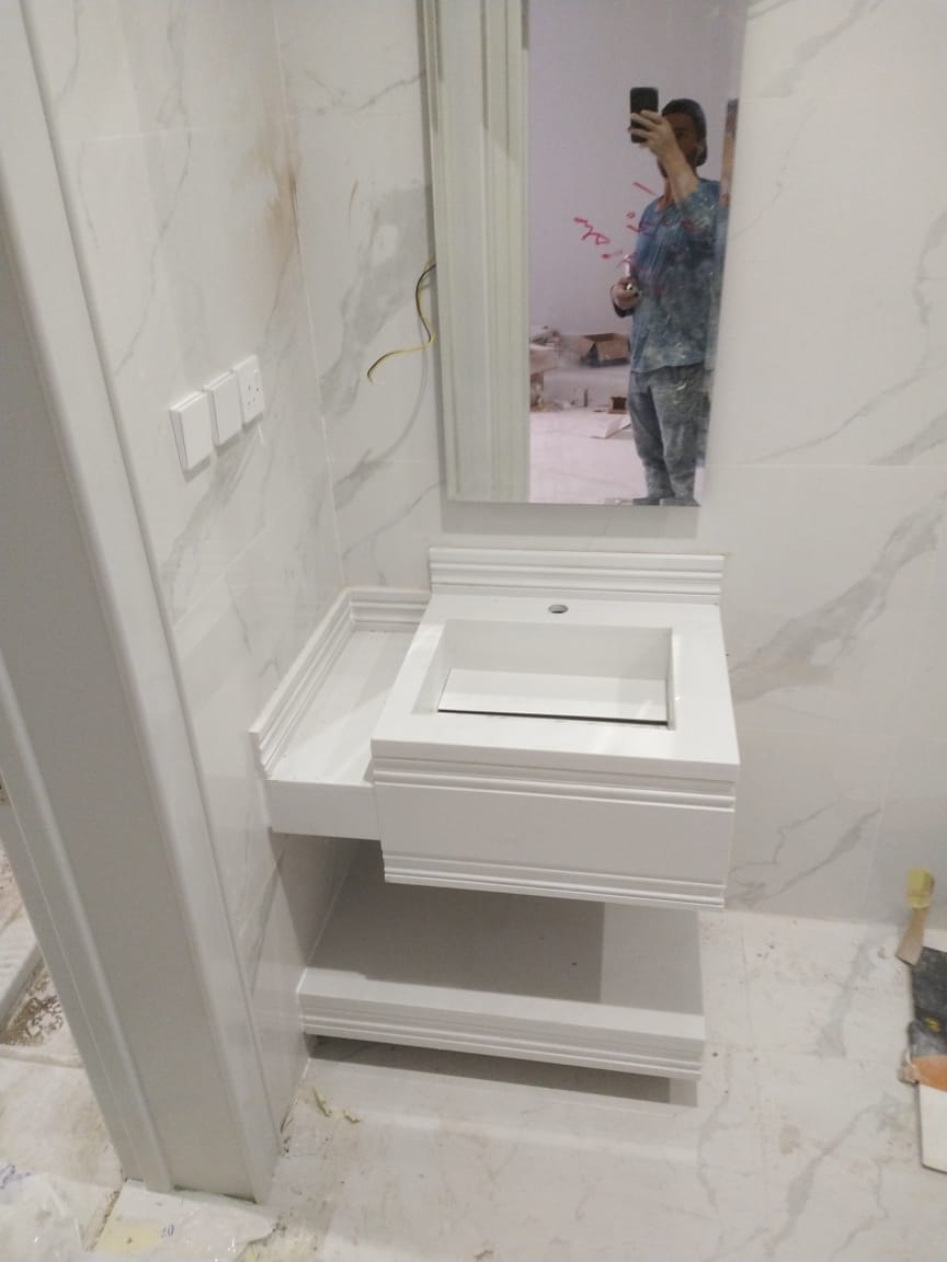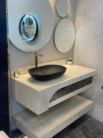 لا يقتصر عمل ركن الإبداع على المغاسل فقط، بل يمتد لتصميم ديكورات رخامية وإكسسوارات ديكورية، ما يضمن توافق المغاسل مع بقية تصميمات المنزل.